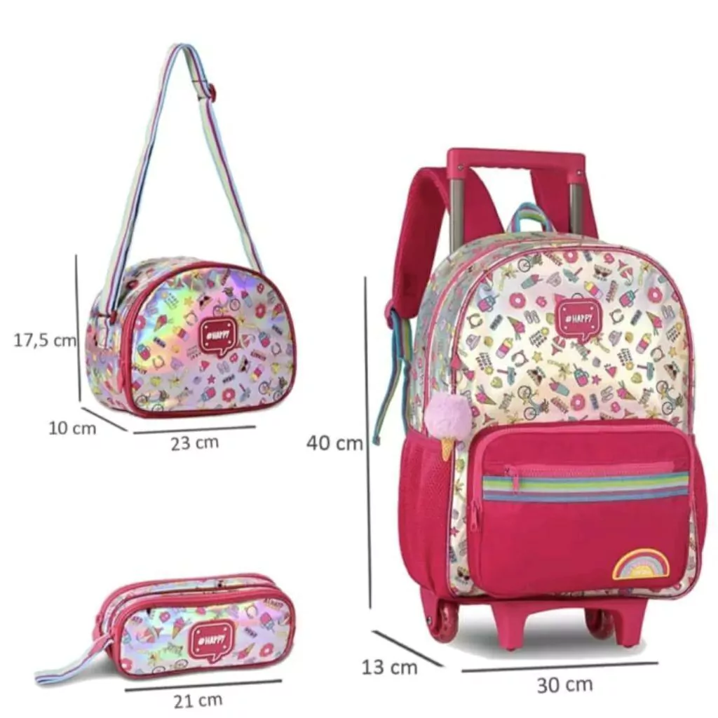 O Kit Mochila Infantil Holográfica Happy da Clio Style é a escolha ideal para meninas que desejam combinar estilo, diversão e funcionalidade no dia a dia escolar. Com um design vibrante e cheio de detalhes encantadores, este kit traz o universo mágico para a rotina das pequenas.