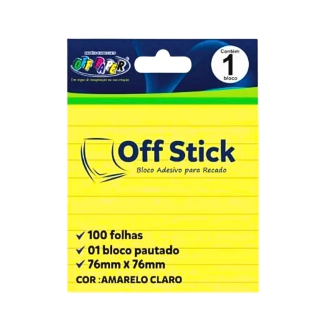📝 Bloco Adesivo Off Stick Pautado Amarelo 76mm x 76mm | Off Paper | Organização no Dia a Dia ✨📚
